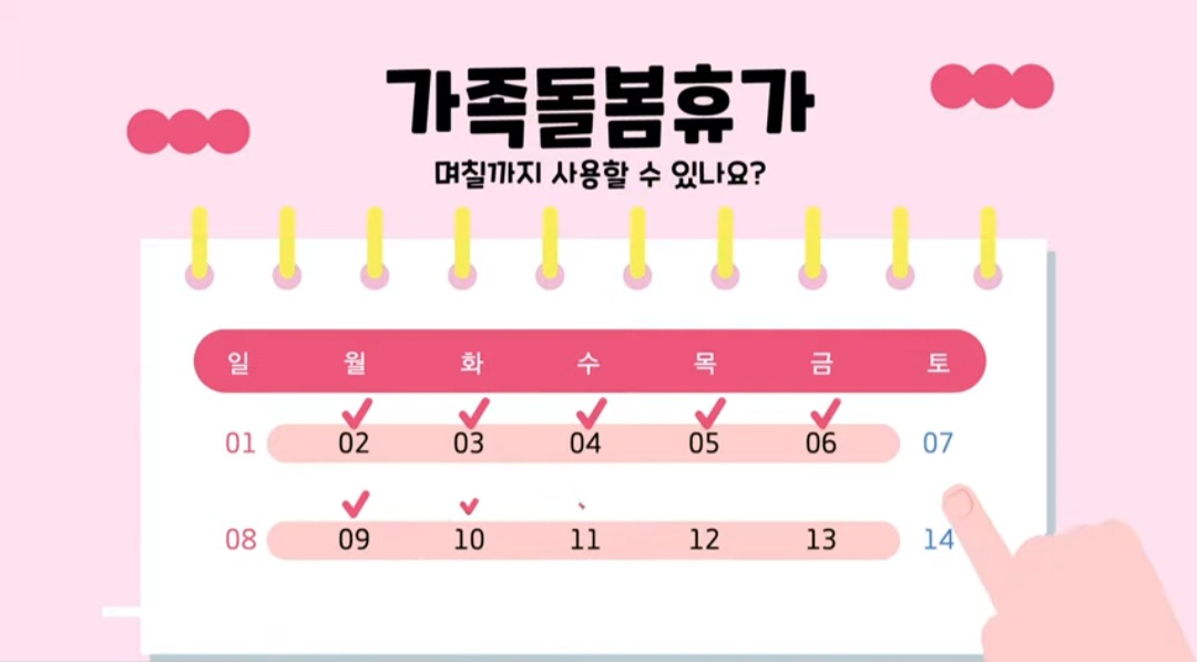*가족돌봄휴가 : 연간 10일 (1일 단위로 분할 사용 가능)