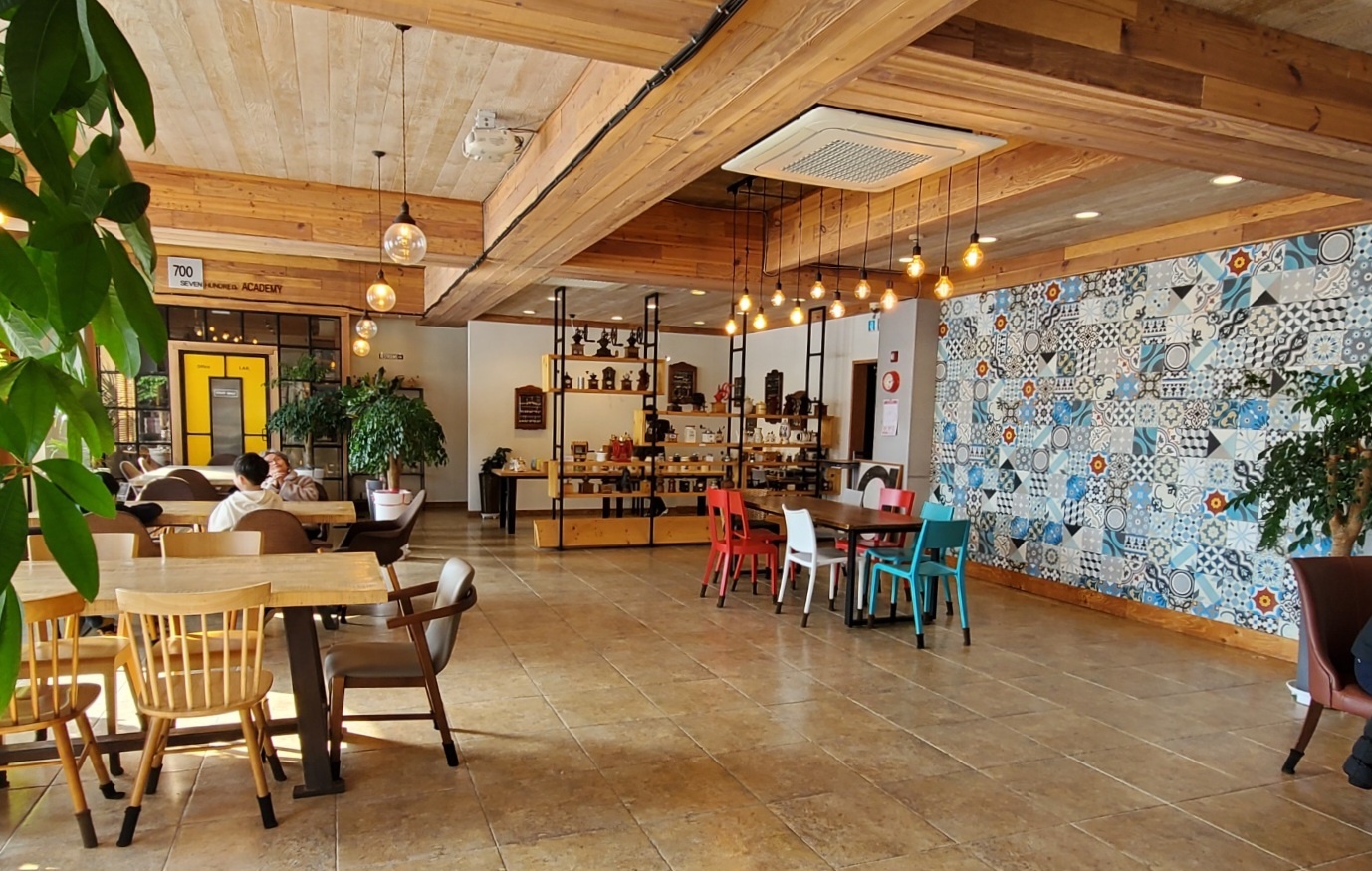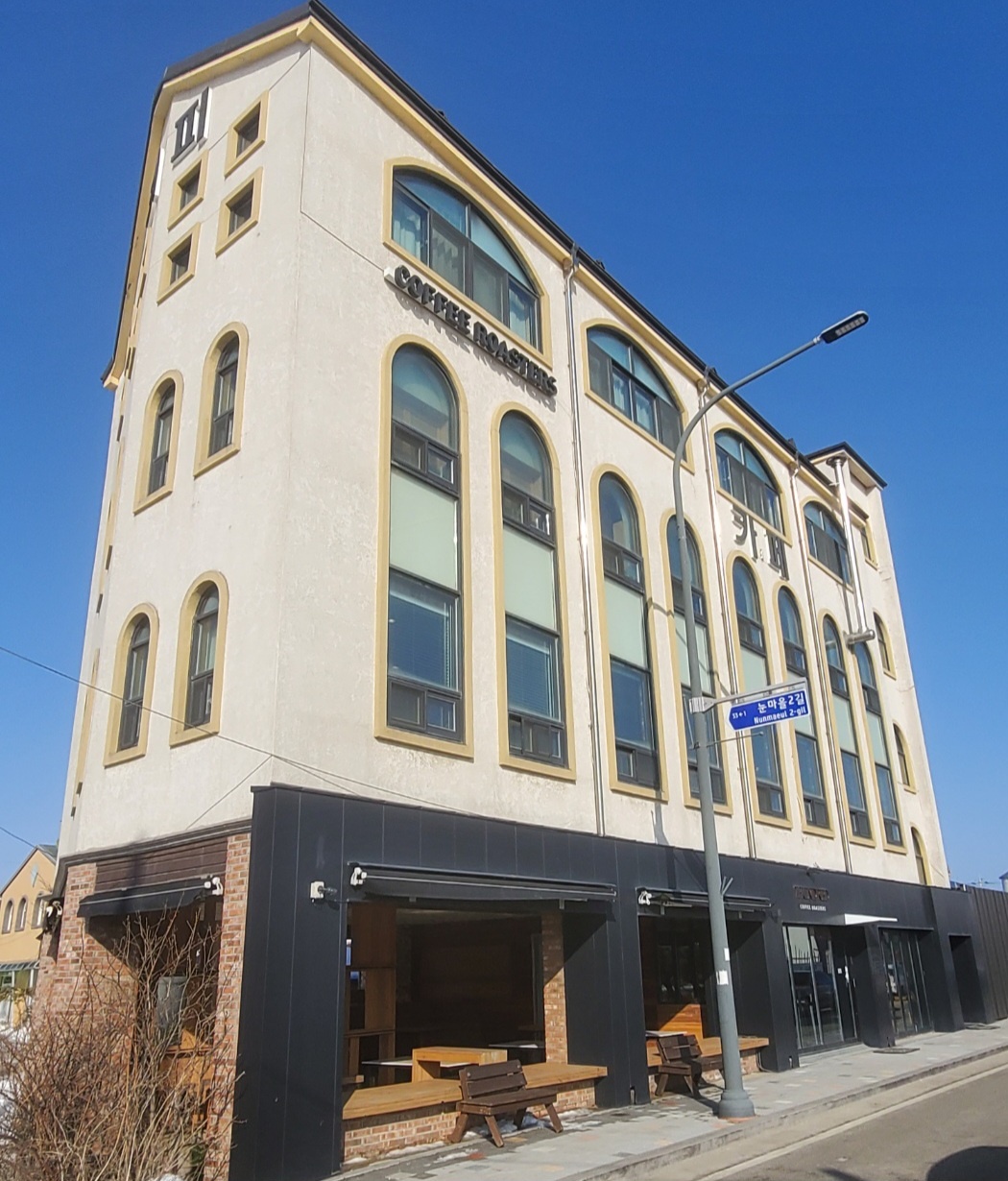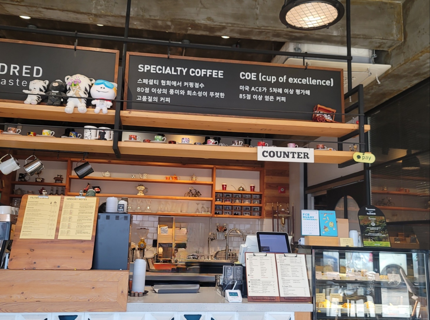 1) 1층은 바리스타죤과 로스팅룸이 있고 테이블이 3개 정도 있습니다 (주문은 1층에서)