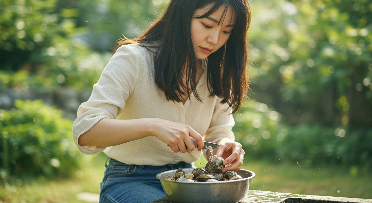굴을 조리하기 전 흐르는 물에 깨끗이 씻어 껍데기와 표면의 불순물을 제거해야 합니다.