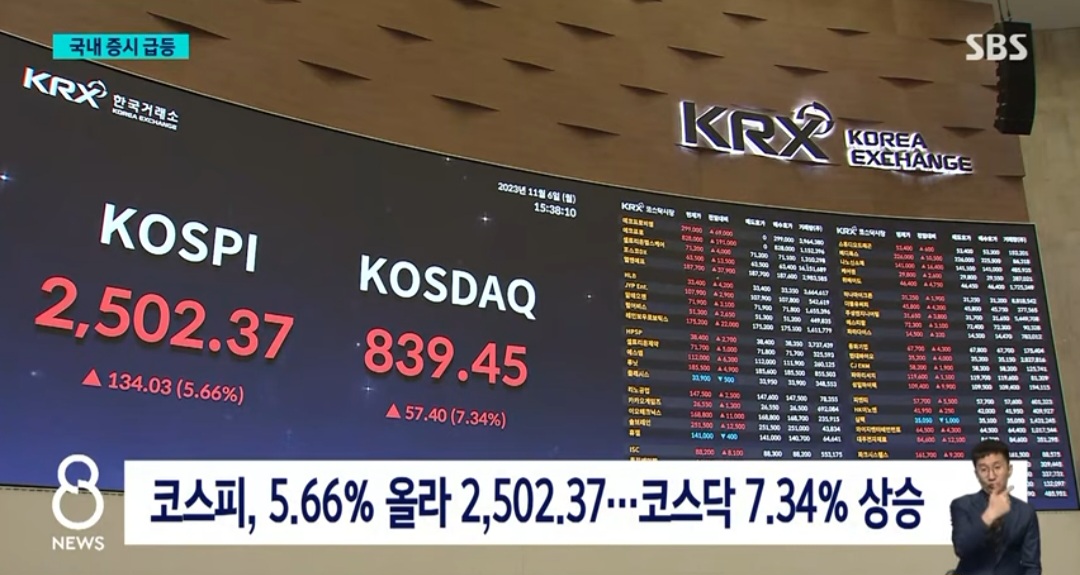 코스피는 5.66%, 코스닥은 7.34% 폭등하며 장을 마쳤습니다.