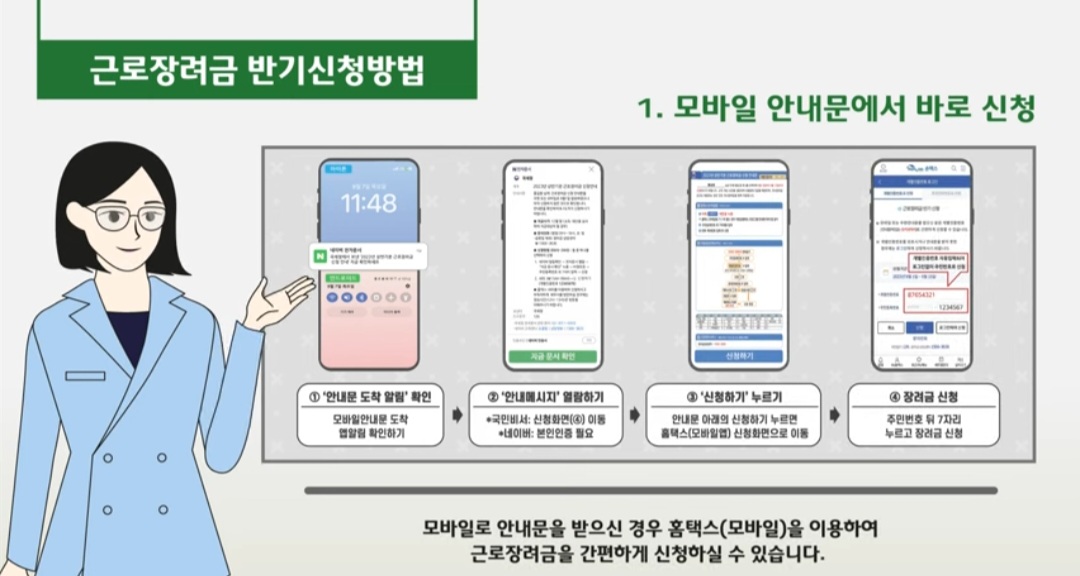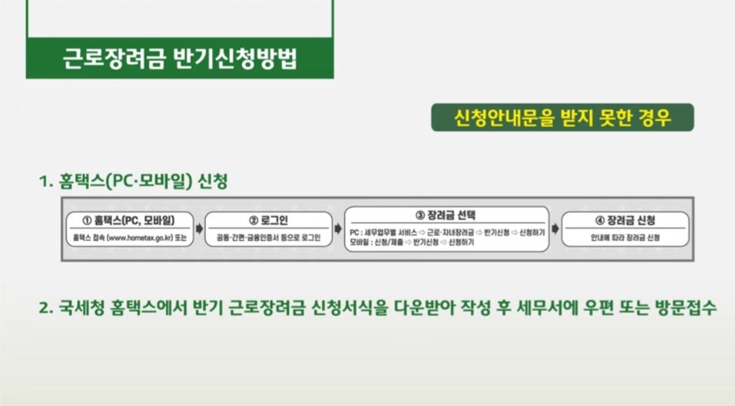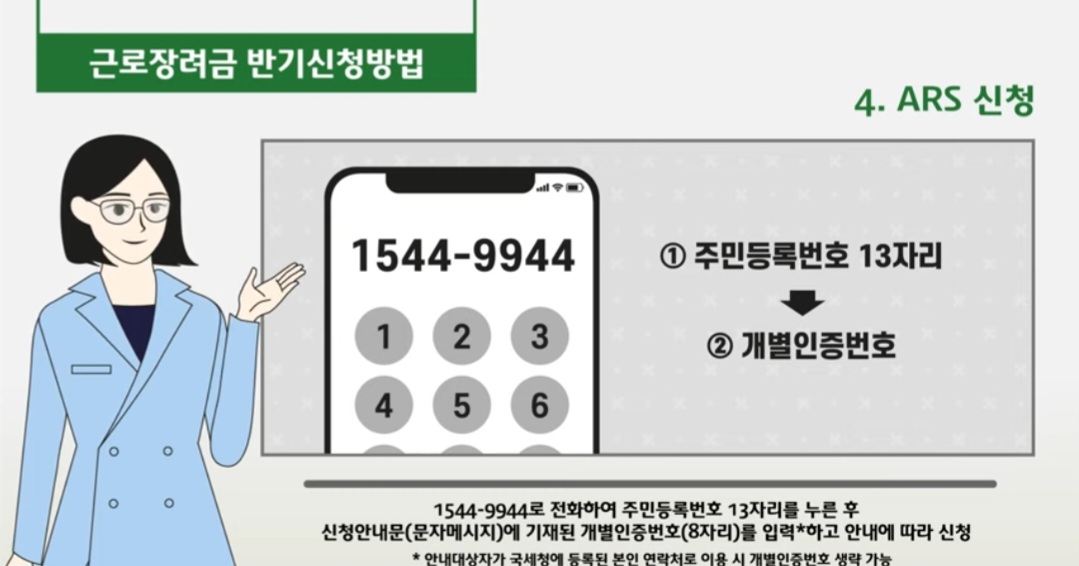 국세청 장려금 상담센터 1566-3636로 신청 가능