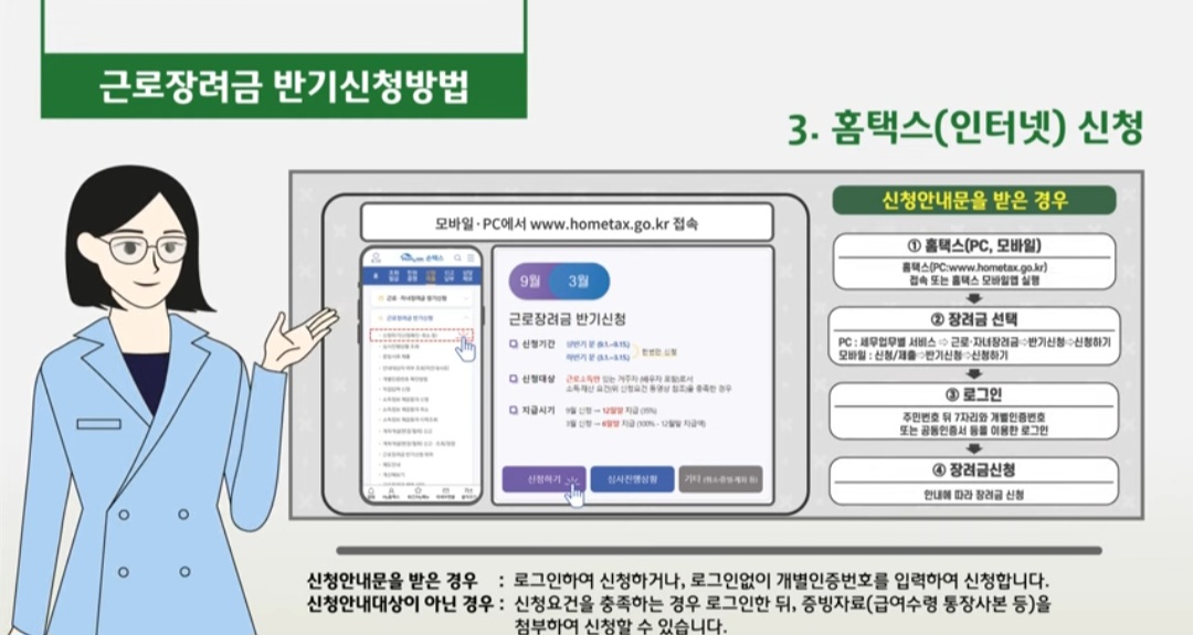 홈택스 PC, 홈택스 모바일 앱 또는 서면으로 장려금을 신청 가능