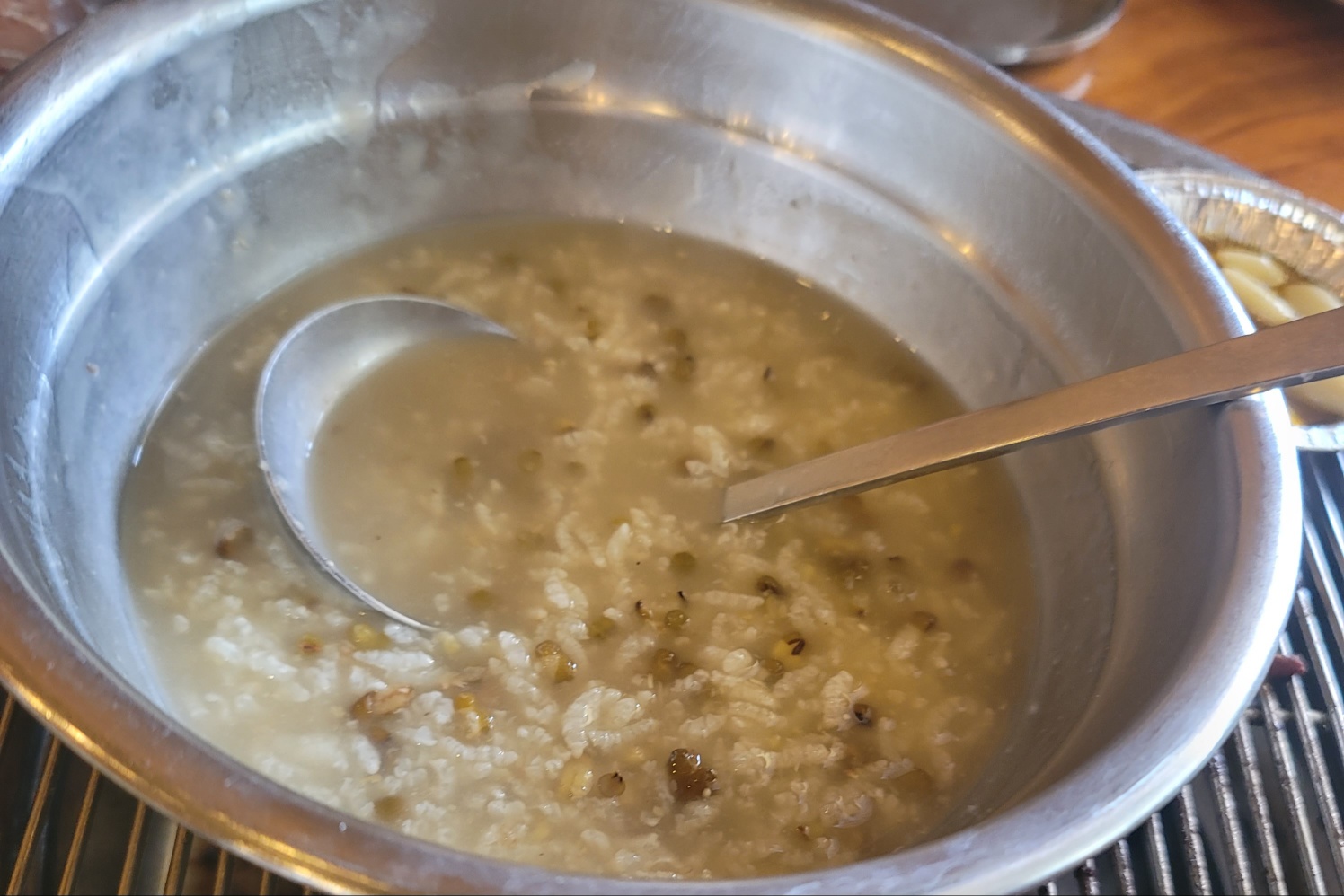 고기를 다 드시면 오리죽을 주는데요 맛은 좀 싱겁지만 가볍게 드실만해요
