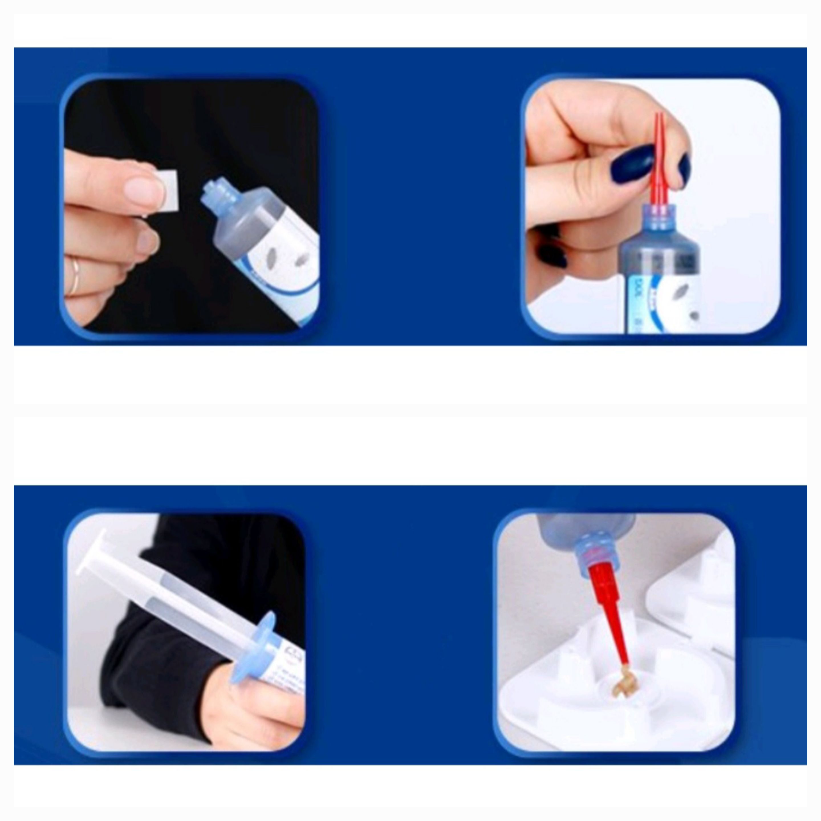 1.맥스포스 셀렉트 겔 튜브 뚜껑을 열고 빨간색 튜브를 연결한 뒤 젤을 작은 콩 모양으로 쥐어냅니다.