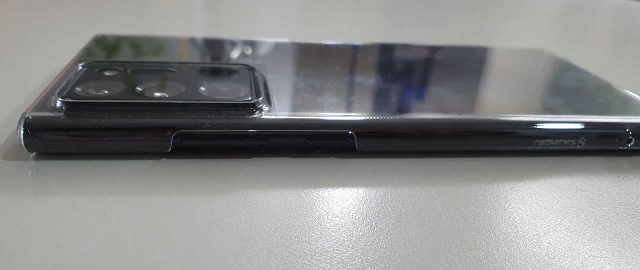 갤럭시노트 20 울트라의 경우 후면 카메라가 노출되어 있어서 특히나 파손에 주의해야 하는데 신지모루 1mm 스키니 슬림 투명 휴대폰 케이스는 카메라를 보호하게끔 돌출되어 있습니다