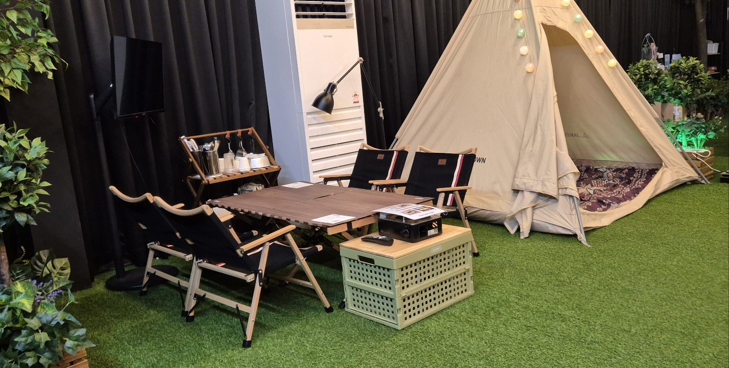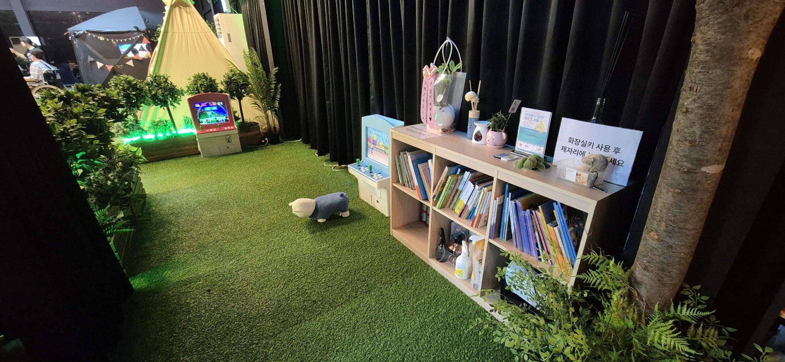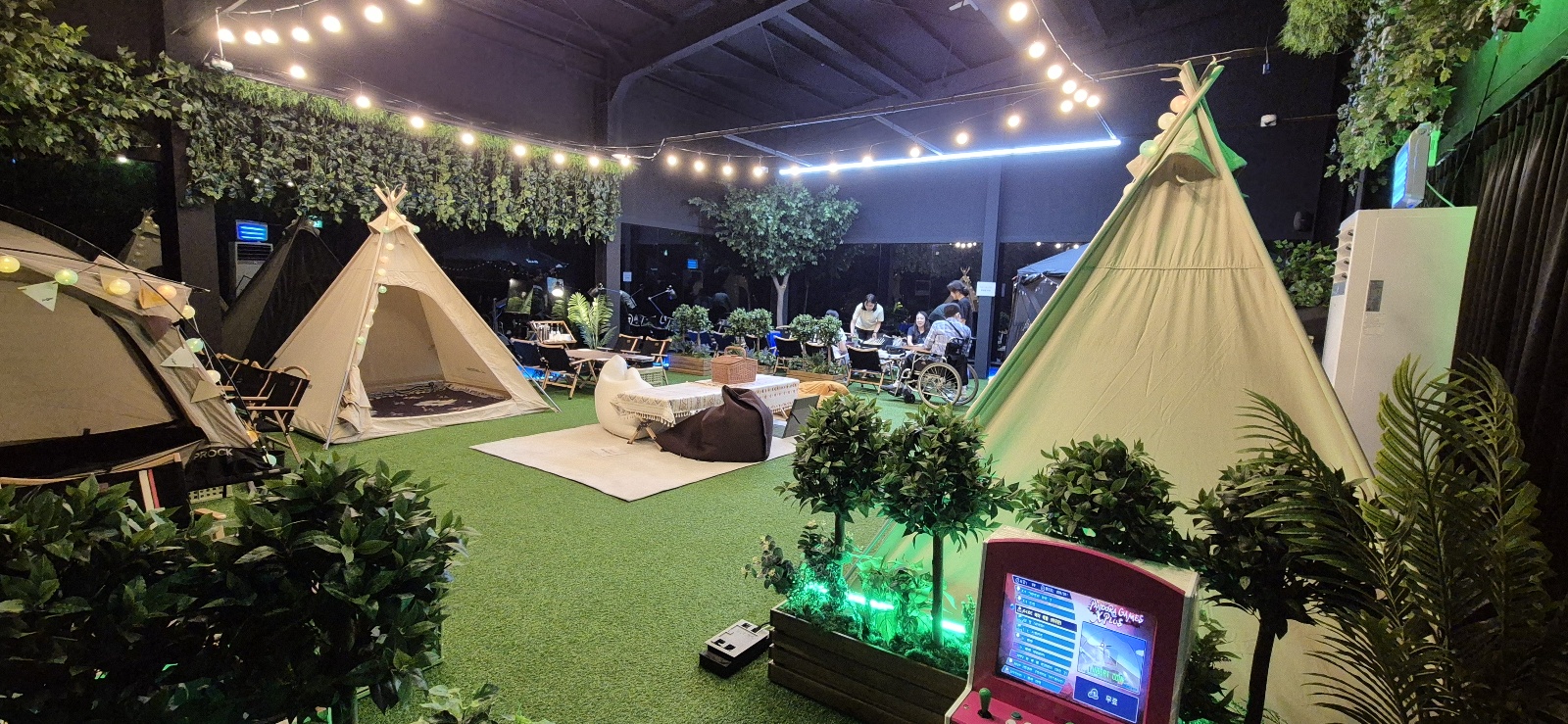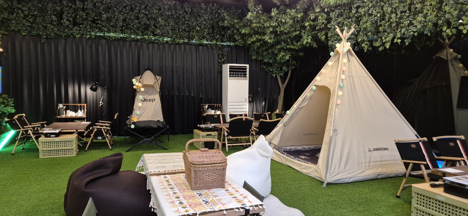조명과 텐트, 아기자기한 소품들이 조화를 이루며, ‘진짜 캠핑’을 떠난 듯한 분위기를 연출합니다. 포근한 매트와 이불이 제공되는 스팟도 있어 캠핑 중간에 잠깐 낮잠을 즐기기에도 좋습니다.