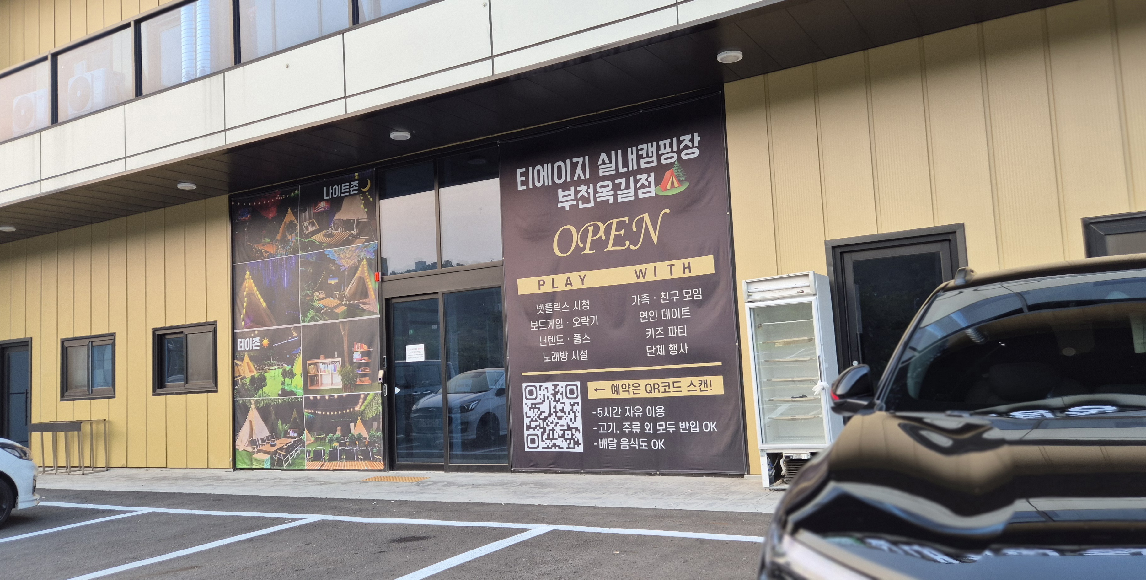 경기도 부천시 소사구 연동로159번길 37에 위치한 이 실내캠핑장은 간판이 크고 도로에서도 눈에 띄기 쉬워 접근성이 매우 뛰어납니다.