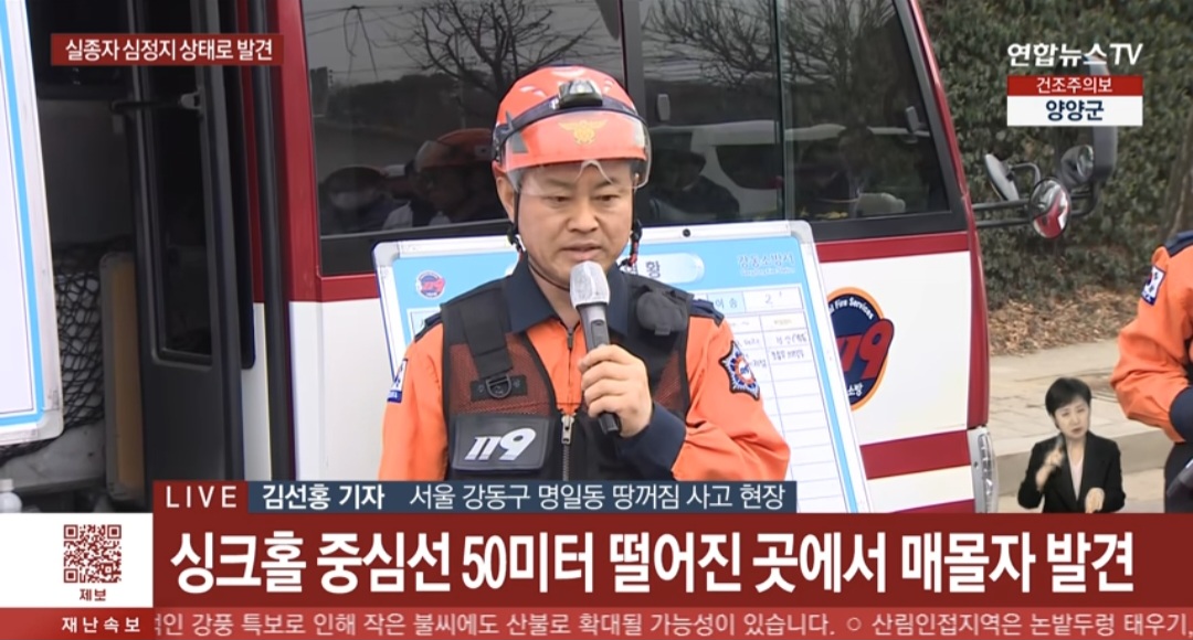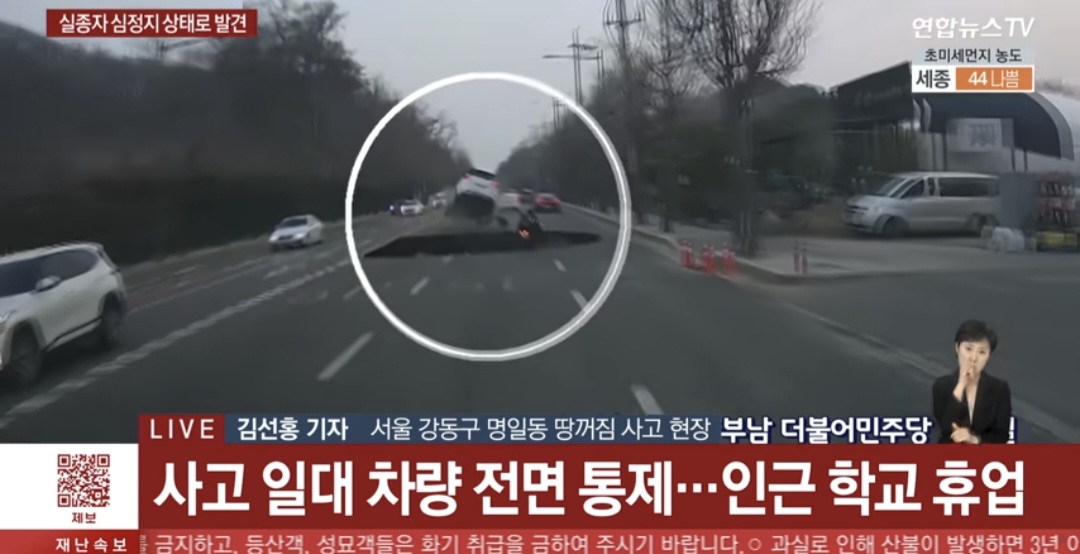 "2025년 서울 강동구 싱크홀 사고" (실제 사례)