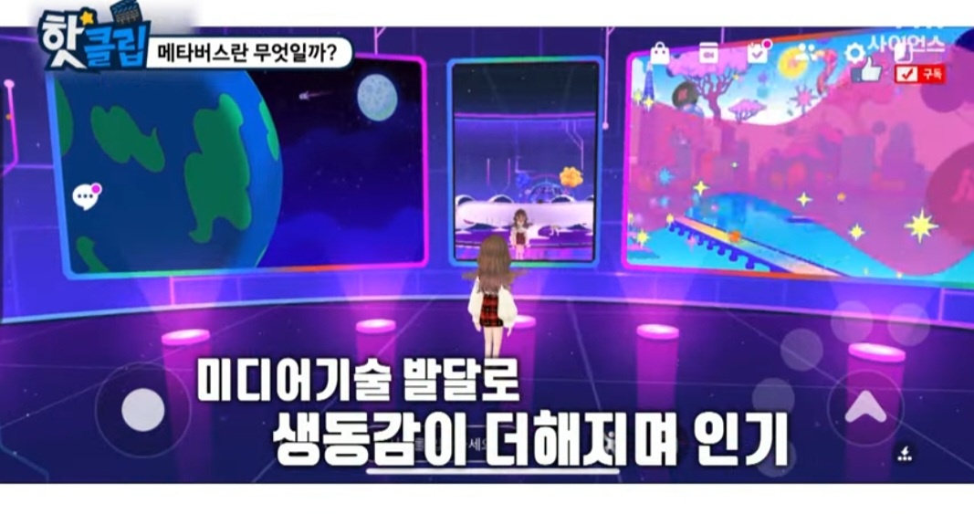 메타버스는 가상현실보다 더 진화한 개념으로, 아바타를 이용해 게임이나 가상현실을 즐기는 데 그치지 않고 실제 현실과 같은 활동을 할 수 있다는 특징이 있습니다