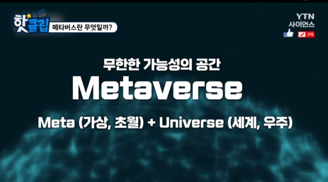 메타버스는 ‘가상’, ‘초월’ 등을 의미하는 영어 '메타'(Meta)와 우주를 의미하는 '유니버스'(Universe)의 합성어입니다