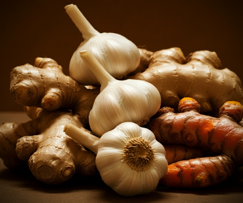 생강은 염증을 줄이고 면역 체계를 강화하는 데 탁월합니다. 생강차로 끓여 마시거나 음식에 곁들여 섭취할 수 있습니다. 특히 감기 초기 증상을 완화하는 데 효과적입니다.