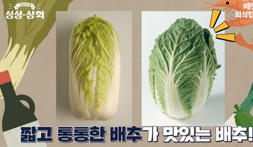 (배추는 긴 모양보다는 짧고 통통한 것이 좋습니다 또한 줄기와 잎은 1:2의 비율이 좋습니다)