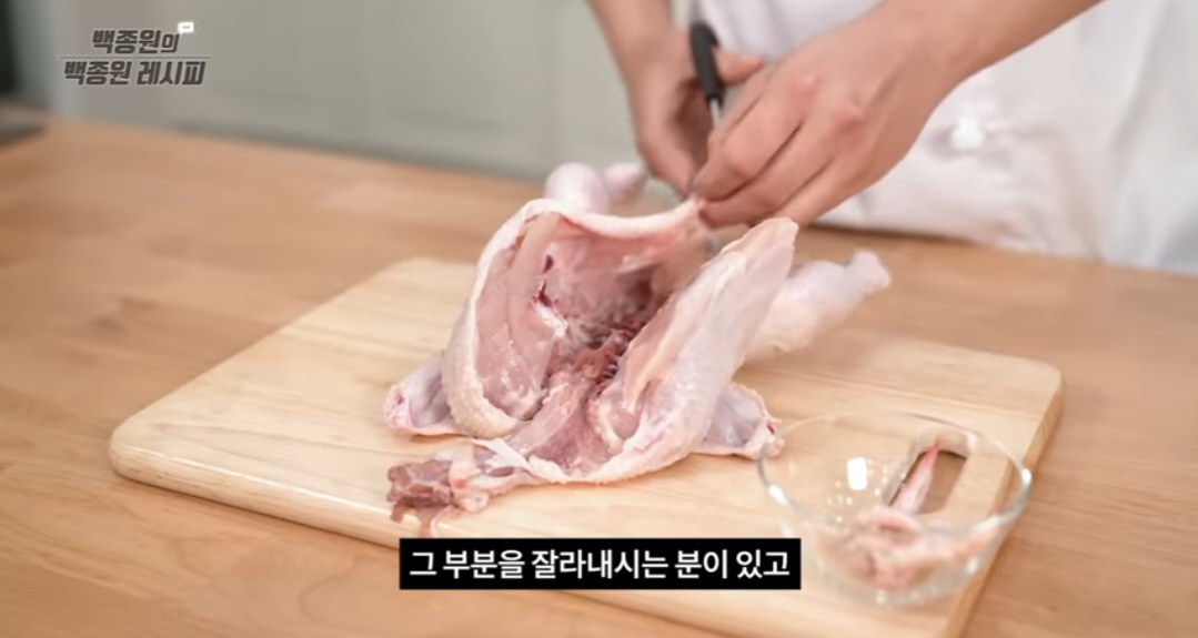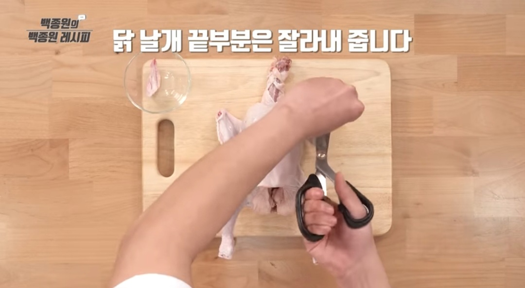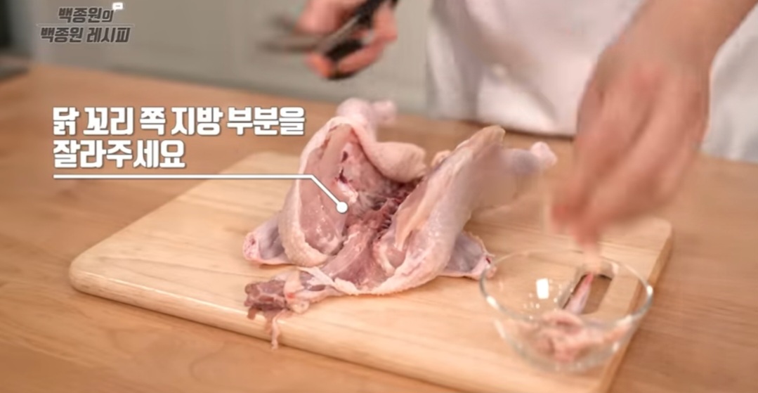 - 닭의 내장을 손가락으로 제거하고 깨끗이 씻습니다.