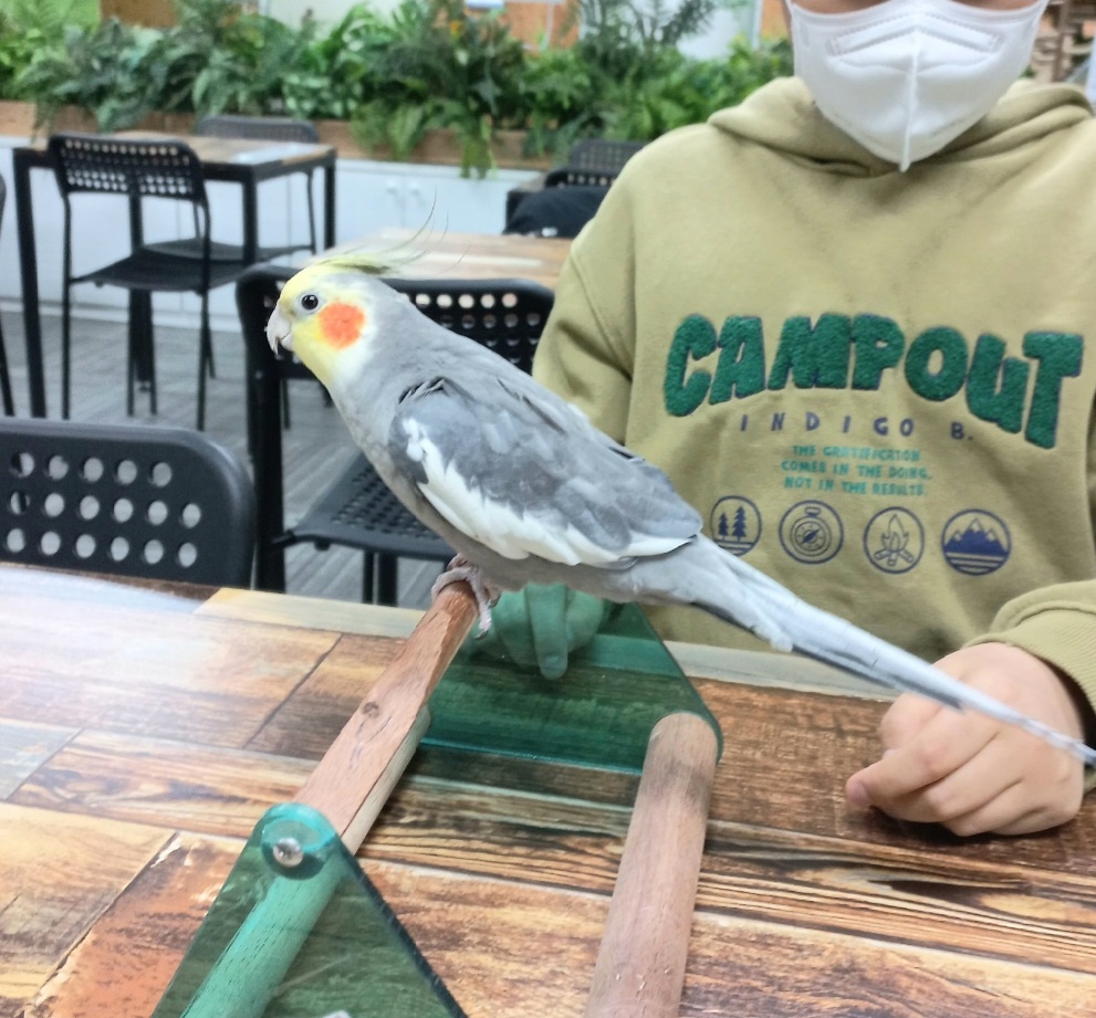 저도 "강이"앵무새랑 찍었는데 가까이 보니 무서웠어요 ㅋㅋ