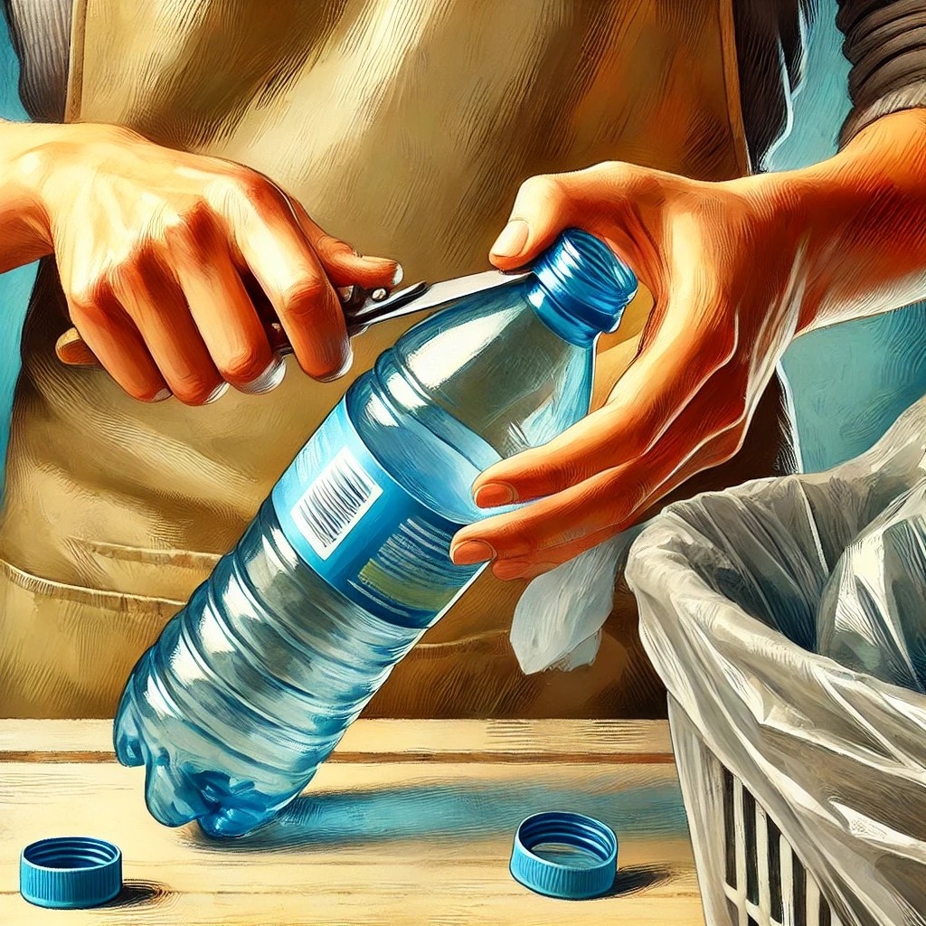 라벨을 제거한 후, 페트병은 찌그러뜨려 공간을 절약하고, 뚜껑은 따로 배출합니다.