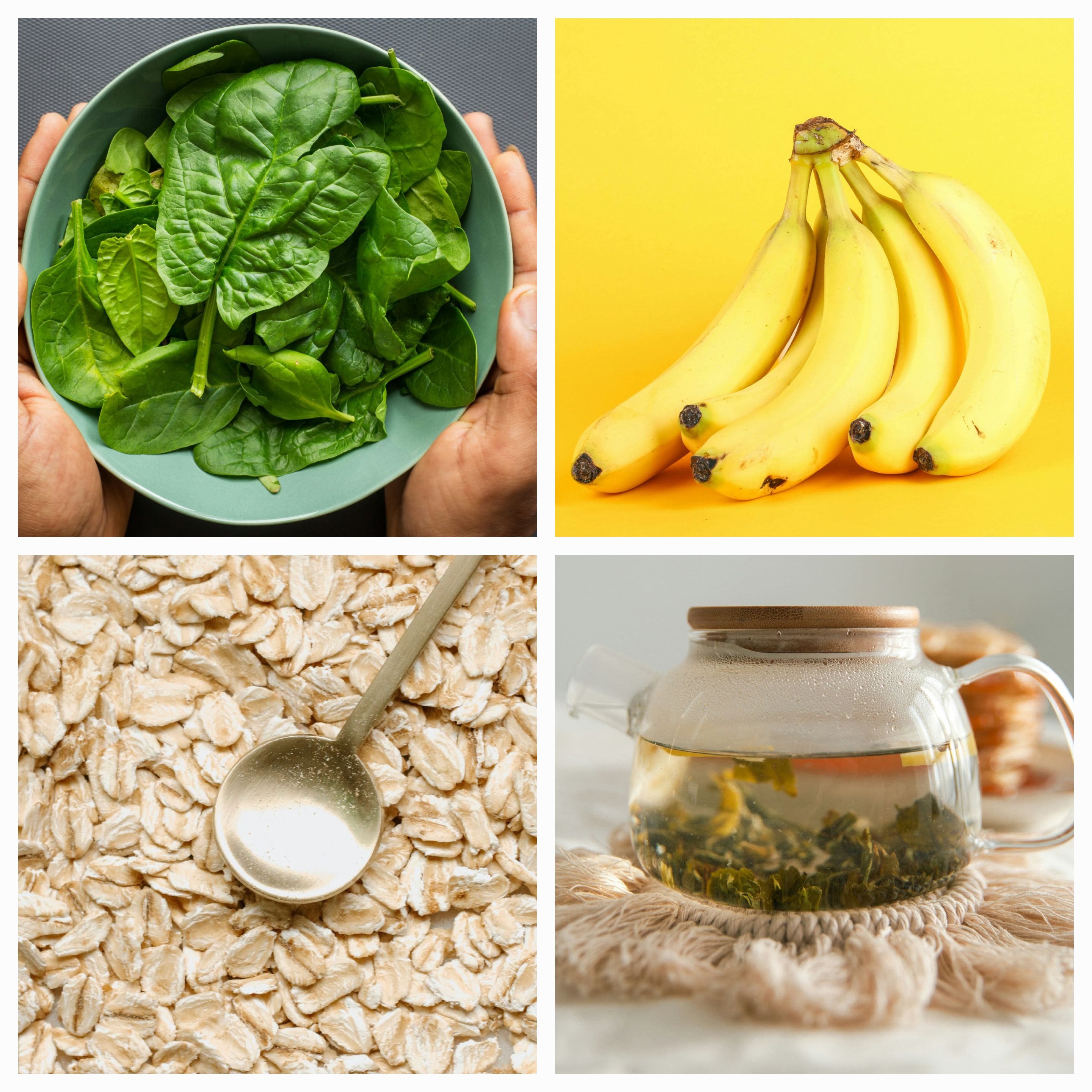 시금치, 케일 등 녹색 잎 채소에 마그네슘이 많습니다.