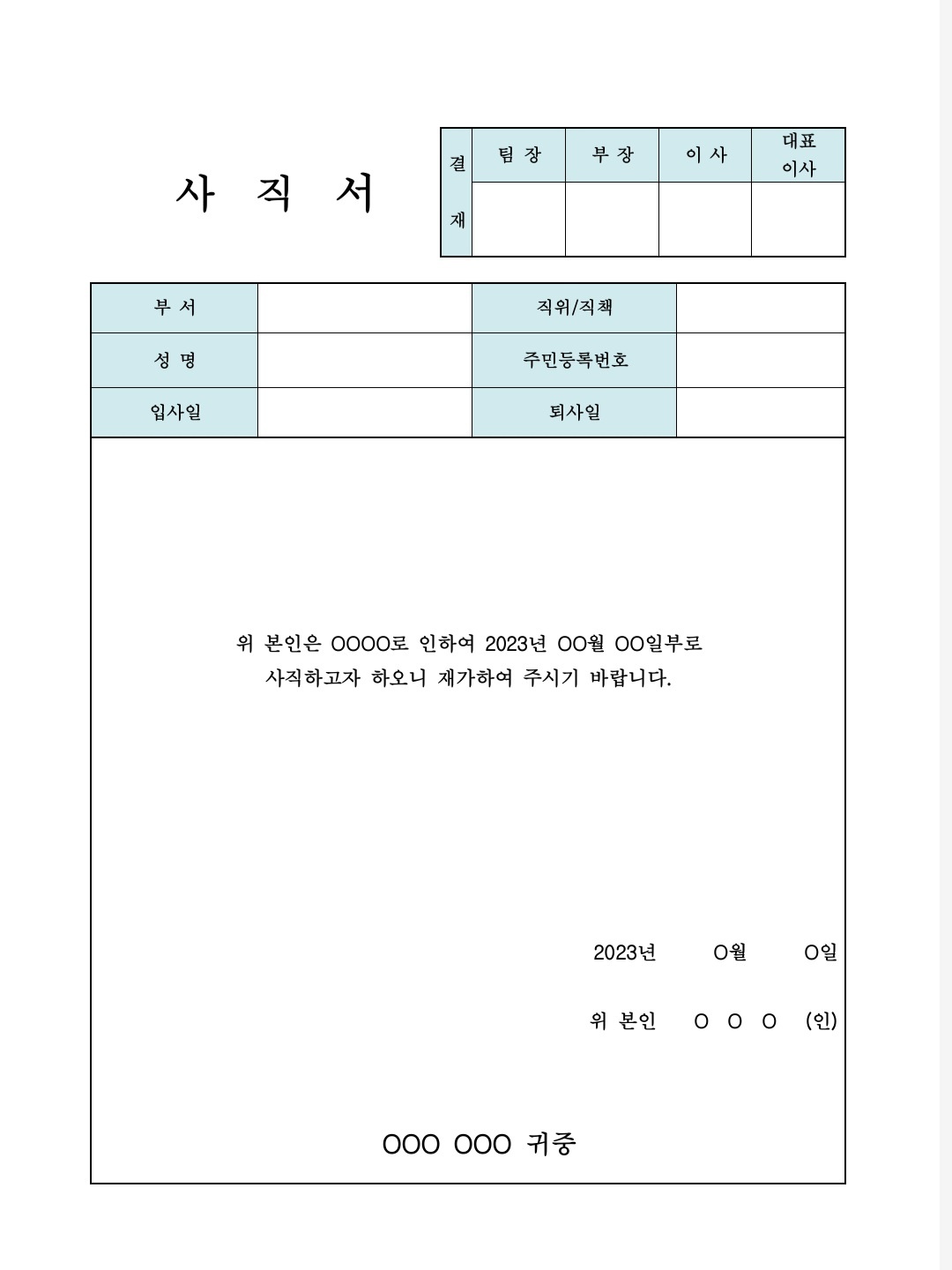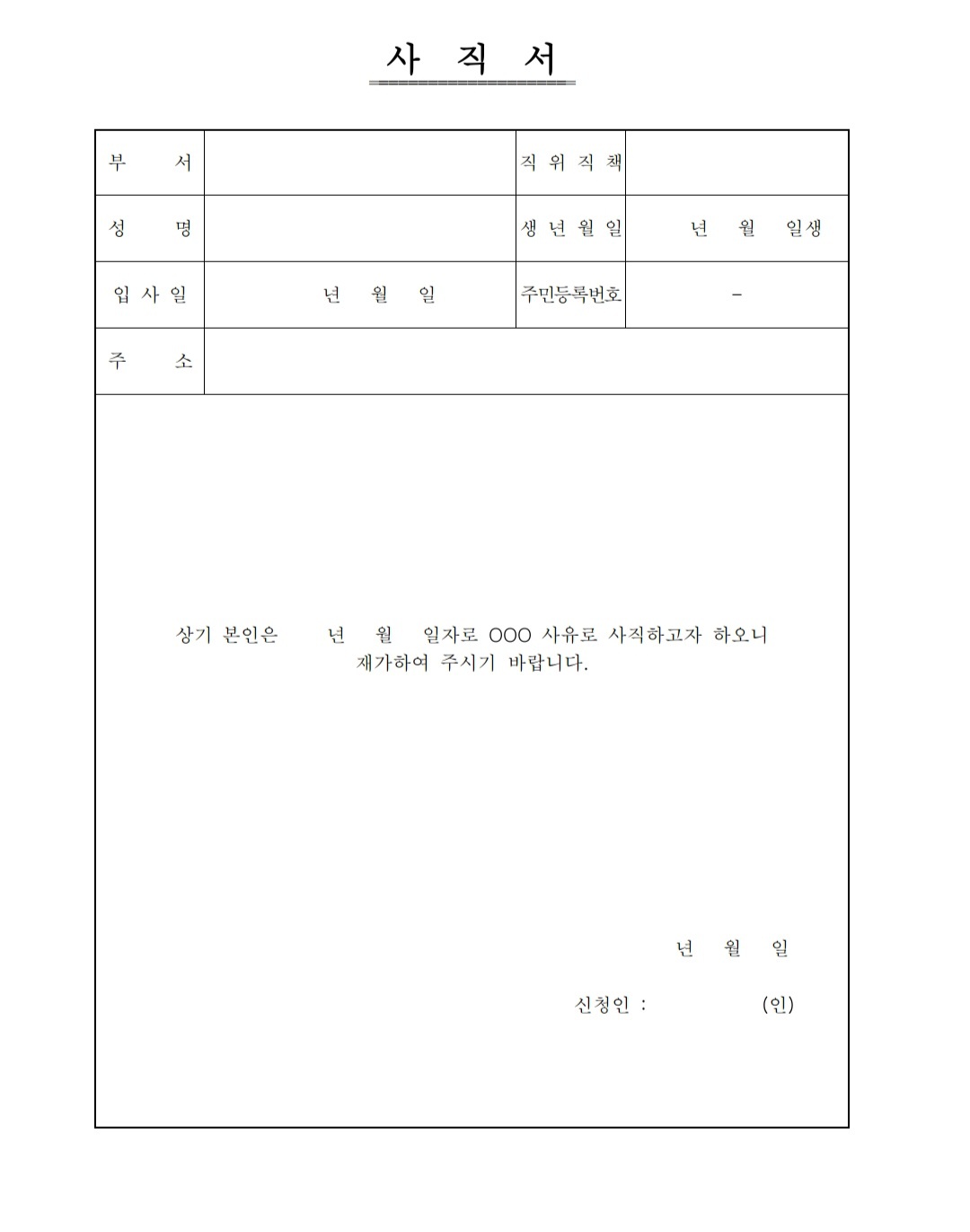 5.사직서는 최대한 간결 명료하게 작성합니다