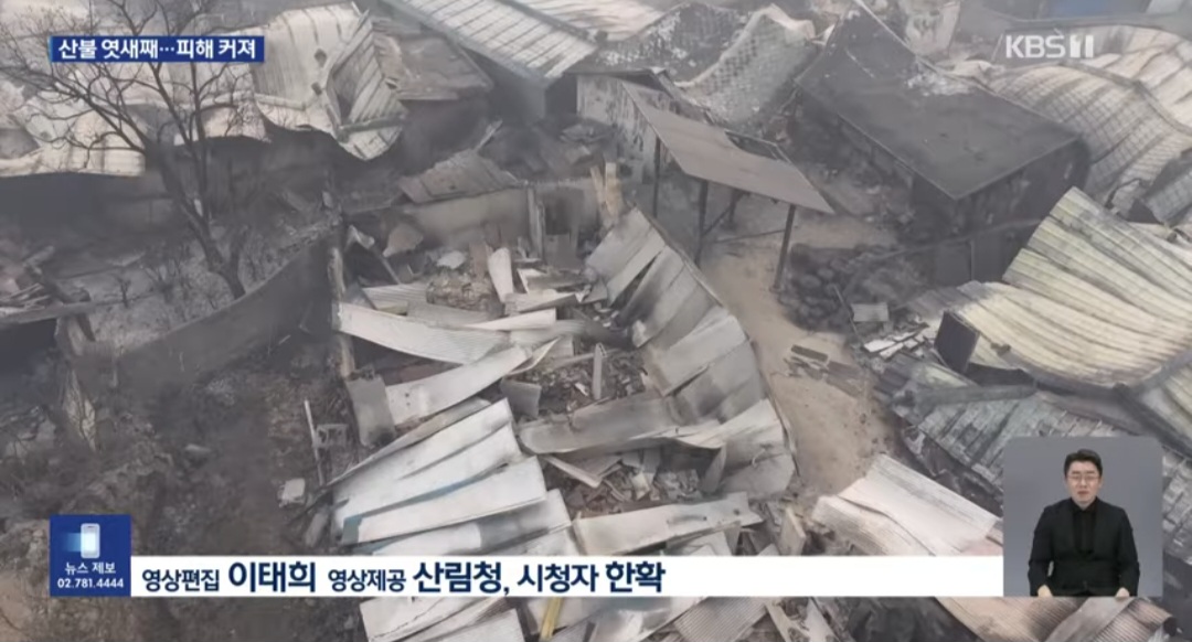 주민센터에 산불 피해 신고 후, 재난지원금 신청 또는 보험사에 청구할 수 있습니다.