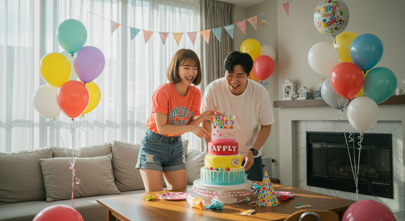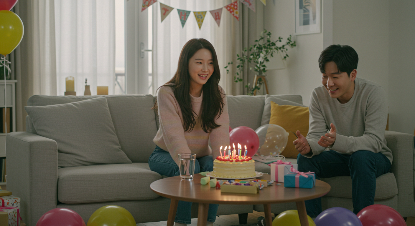 * "생일 축하! 너 덕분에 매일이 즐겁다. 앞으로도 내 옆에서 행복하게 지내자!"