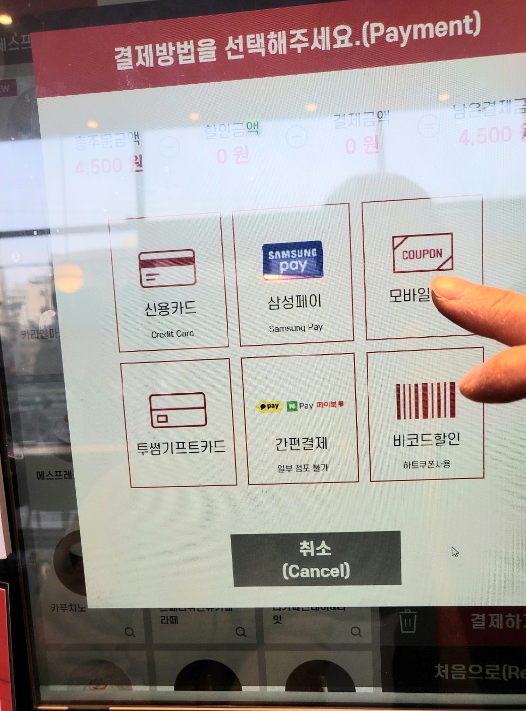 5.커피 매장의 키오스크 판매대를 이용하여 주문합니다