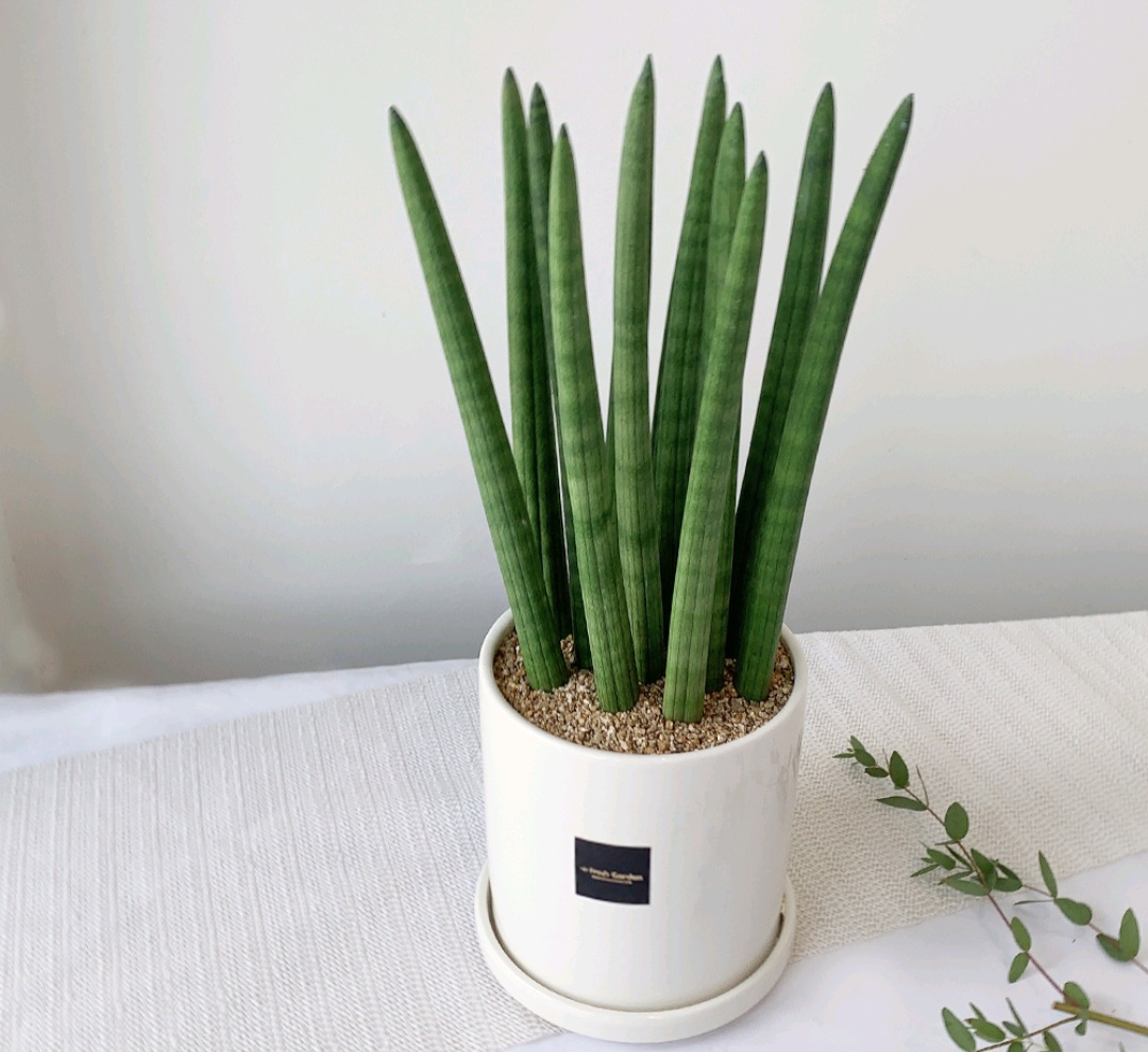 산세베리아는 공기 중 이산화탄소를 산소로 바꾸는 능력이 뛰어납니다. 밤에도 산소를 방출해 침실에 놓기 좋은 식물입니다.