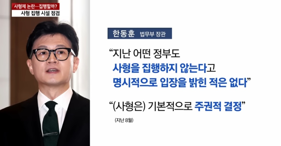 최근 법무부는 전국 교도소의 사형 시설을 점검하고 실제로 집행 가능한 서울 구치소로 연쇄살인범 유영철 같은 사형수들을 이감시키면서 사형 집행이 부활되는게 아닌가라는 예측이 되고 있습니다