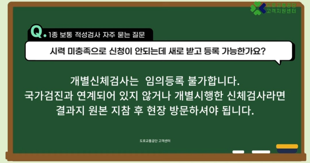 2.1종 면허는 나이와 관계없이 신체 검사 필요