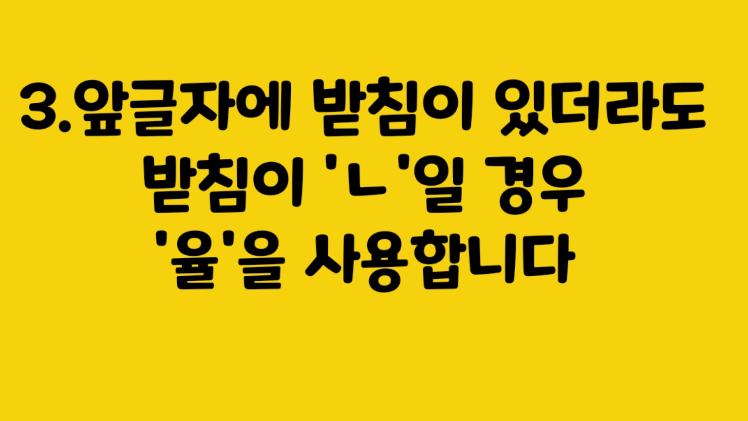 3.앞글자에 받침이 있더라도 받침이 'ㄴ'일 경우 '율'을 사용합니다