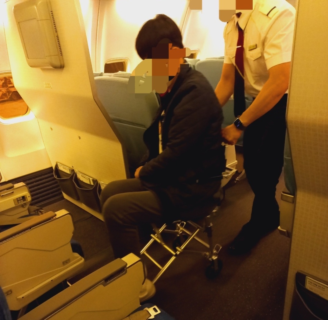 5.비행기 좌석으로 이동시에는 기내용 휠체어로 갈아타고 이동합니다