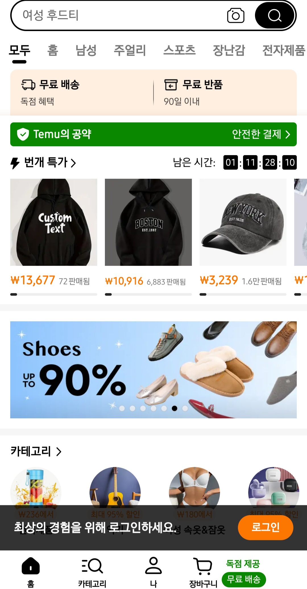 최신 패션 아이템과 화장품을 비롯한 다양한 상품을 Temu에서 한 번에 쇼핑하세요. 신규 사용자를 위한 무료 배송. 90일 이내 무료 반품. Temu에서 쇼핑하고 절약을 시작하세요.