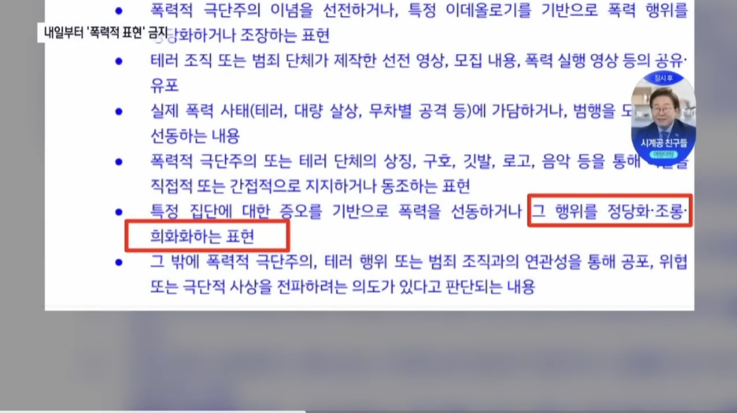 문제는 '극단주의 정보'나 '선동' 같은 모호한 개념의 기준이 포함되었다는 점인데요. 이로 인해 자의적 판단으로 표현의 자유를 침해할 수 있다는 비판이 나오고 있습니다.