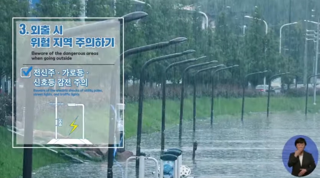 3.감전의 우려가 있는 전신주, 가로등, 신호등을 만지지 않도록 합니다