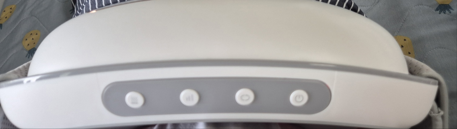 조작버튼은 전원, 방향 전환, 세기 조절, 온열 버튼으로 총 4개입니다. 각각 직관적으로 배치되어 있으며, 전원은 3~5초간 누르면 켜지고, 세기 조절은 3단계로 선택 가능합니다. 온열기능은 전원과 함께 자동으로 작동되며, 원치 않으면 따로 끌 수 있어 조절이 용이합니다.