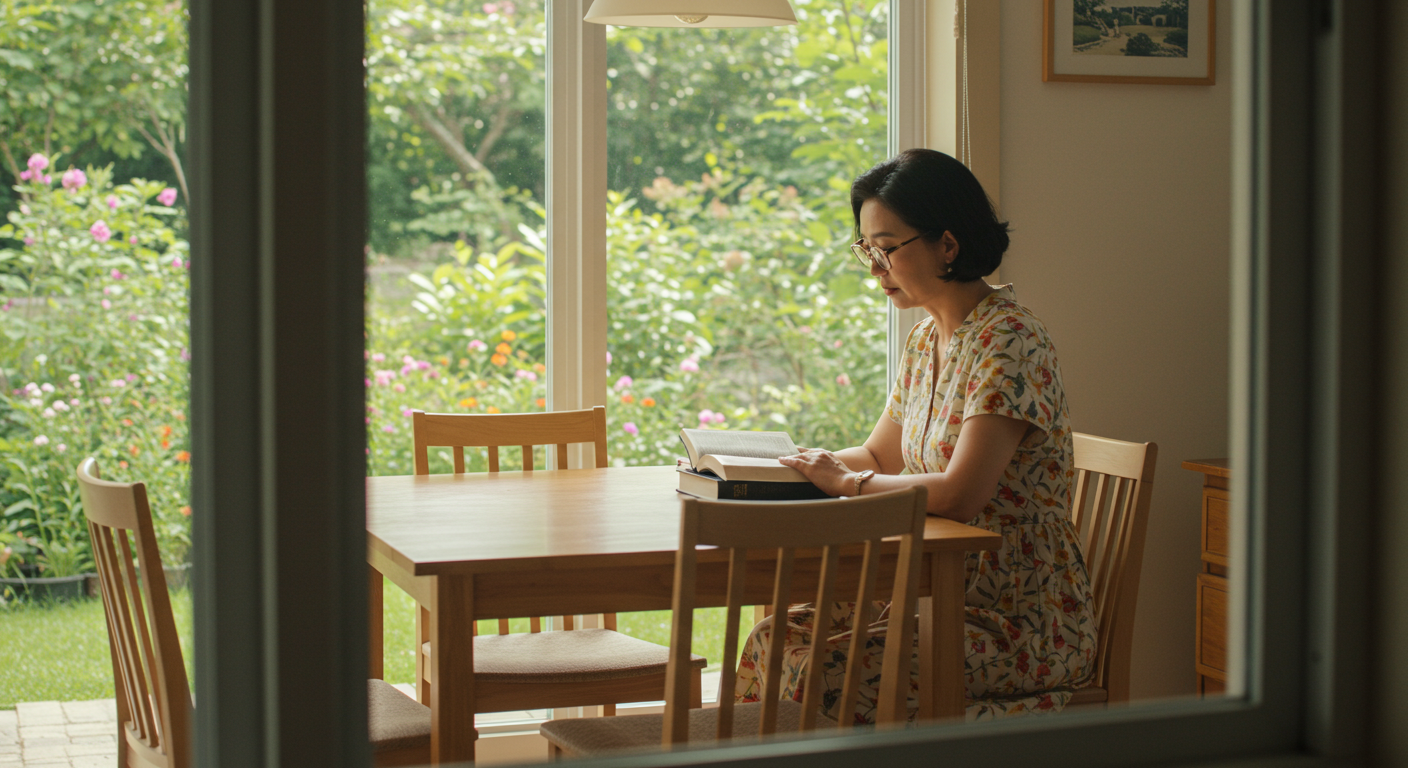 아침 시간이나 저녁 햇살 아래에서 성경을 낭독하며 자연을 묵상하는 시간을 추천합니다.