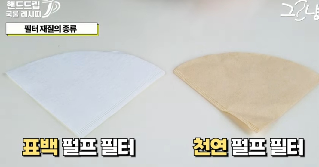 천연필터와 표백 필터가 있는데 저는 표백 필터를 추천합니다 이유는 추출시 종이 냄새가 거의 없기 때문입니다