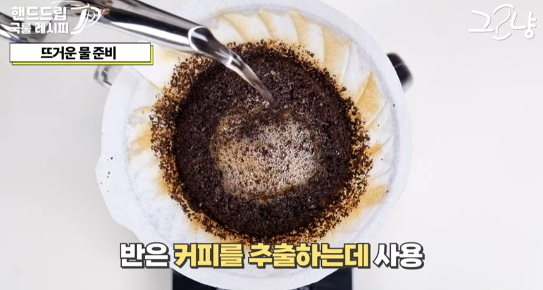 - 이렇게 하면 필터에 있는 종이 냄새가 제거되고, 커피의 맛이 더 좋아집니다.