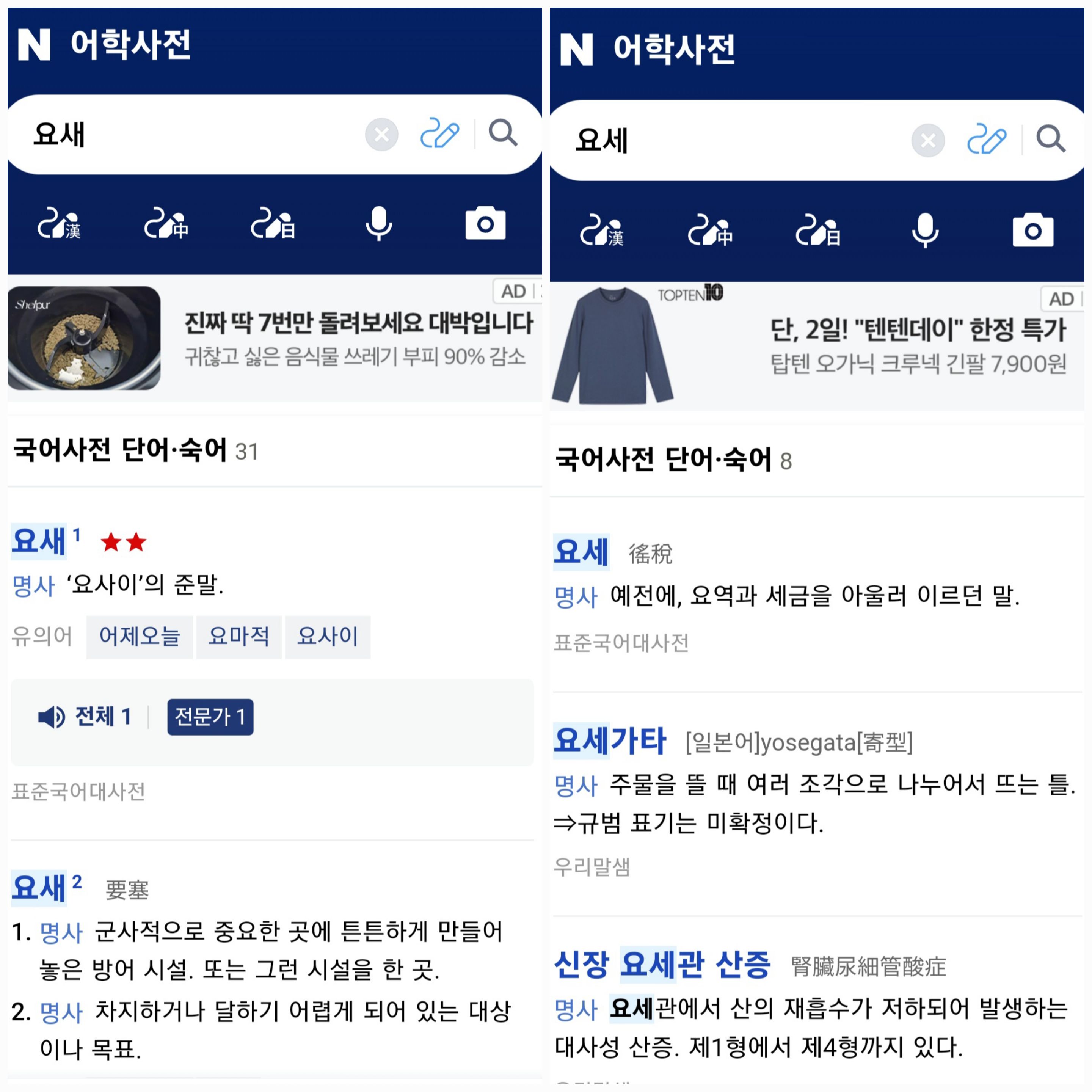 해설: ‘요새’는 ‘요’와 ‘한때로부터 다른 때까지의 동안’이라는 의미를 지닌 ‘사이’가 결합되어 줄어든 말입니다. ‘사이’가 축약될 때는 ‘새’로 줄어들기 때문에 ‘요세’가 아닌 ‘요새’로 쓰는 것이 맞습니다.