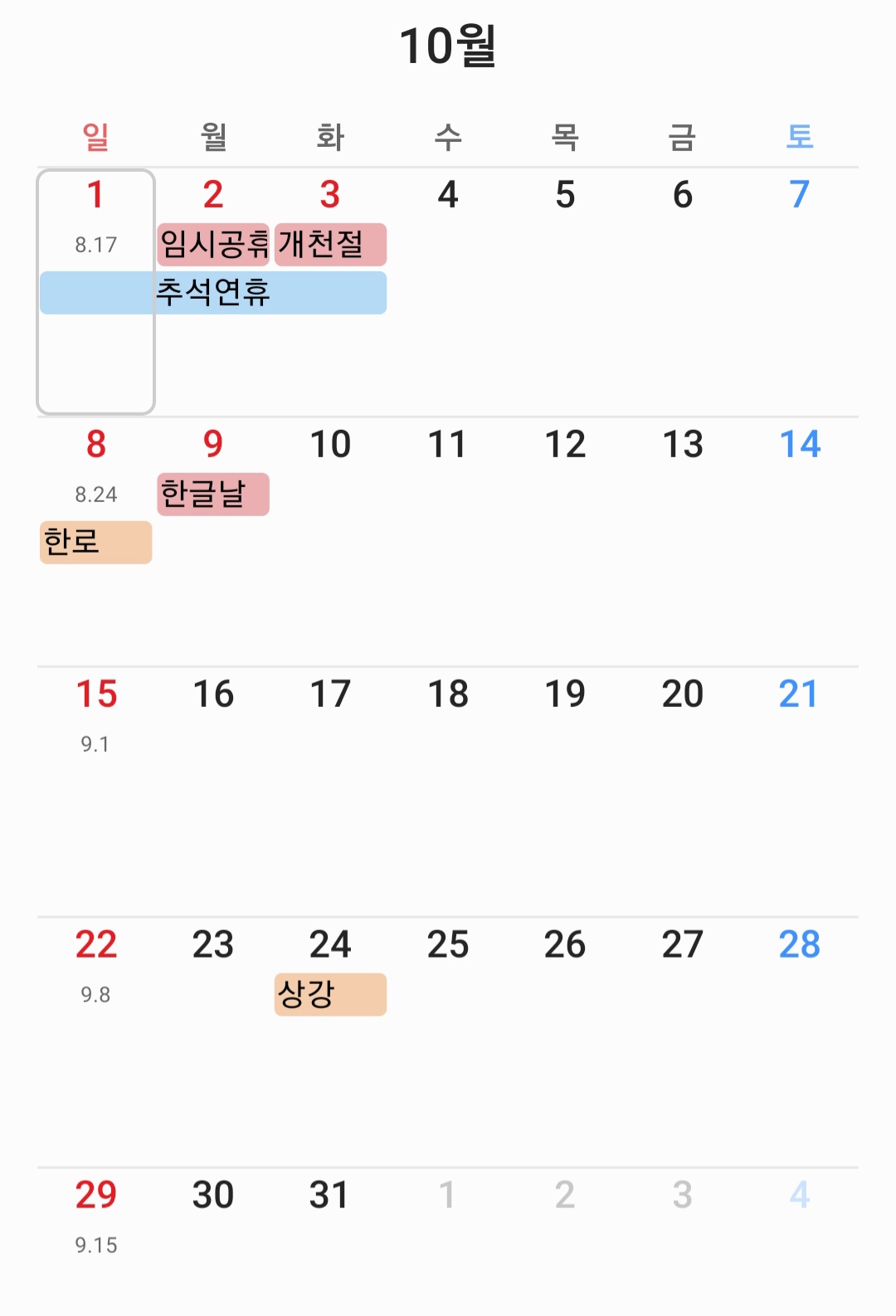 그 다음주인 10월9일(월) 한글날까지 총 12일의 장기간 휴가로 장거리 해외여행도 가능할 것 같습니다