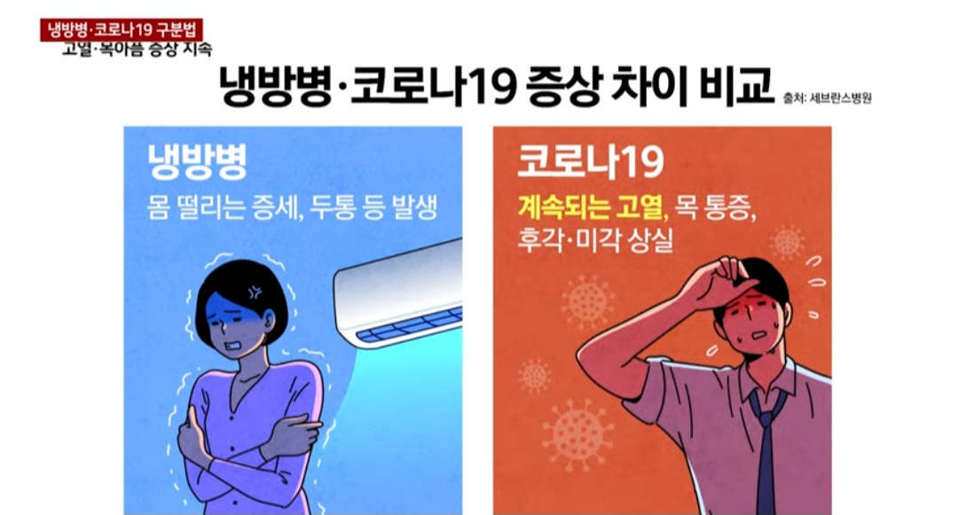 2024년 코로나19와 냉방병 증상 및 치료법 차이, 코로나 확진자 정상 출근 가능한가요?
