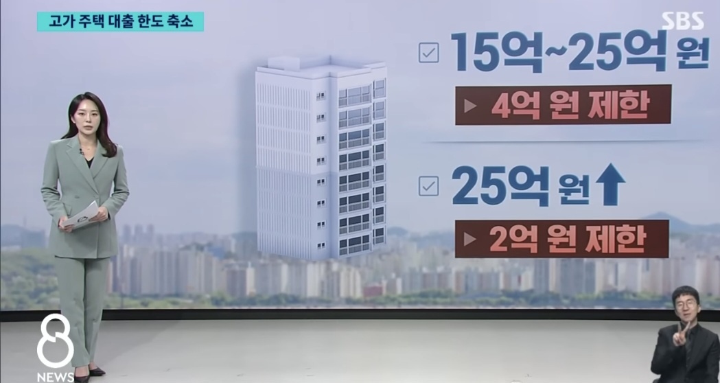 15억 이하 6억, 25억 초과 2억으로 주택 가격 구간별 대출 한도가 차등화되었습니다.