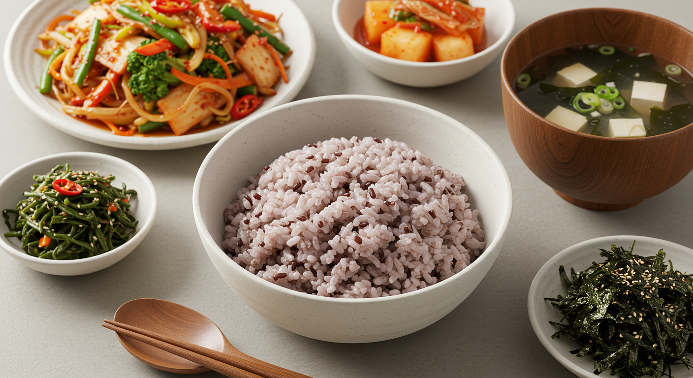 3. 오곡밥: 다섯 가지 곡물을 넣어 지은 밥으로, 풍년과 건강을 기원하는 의미