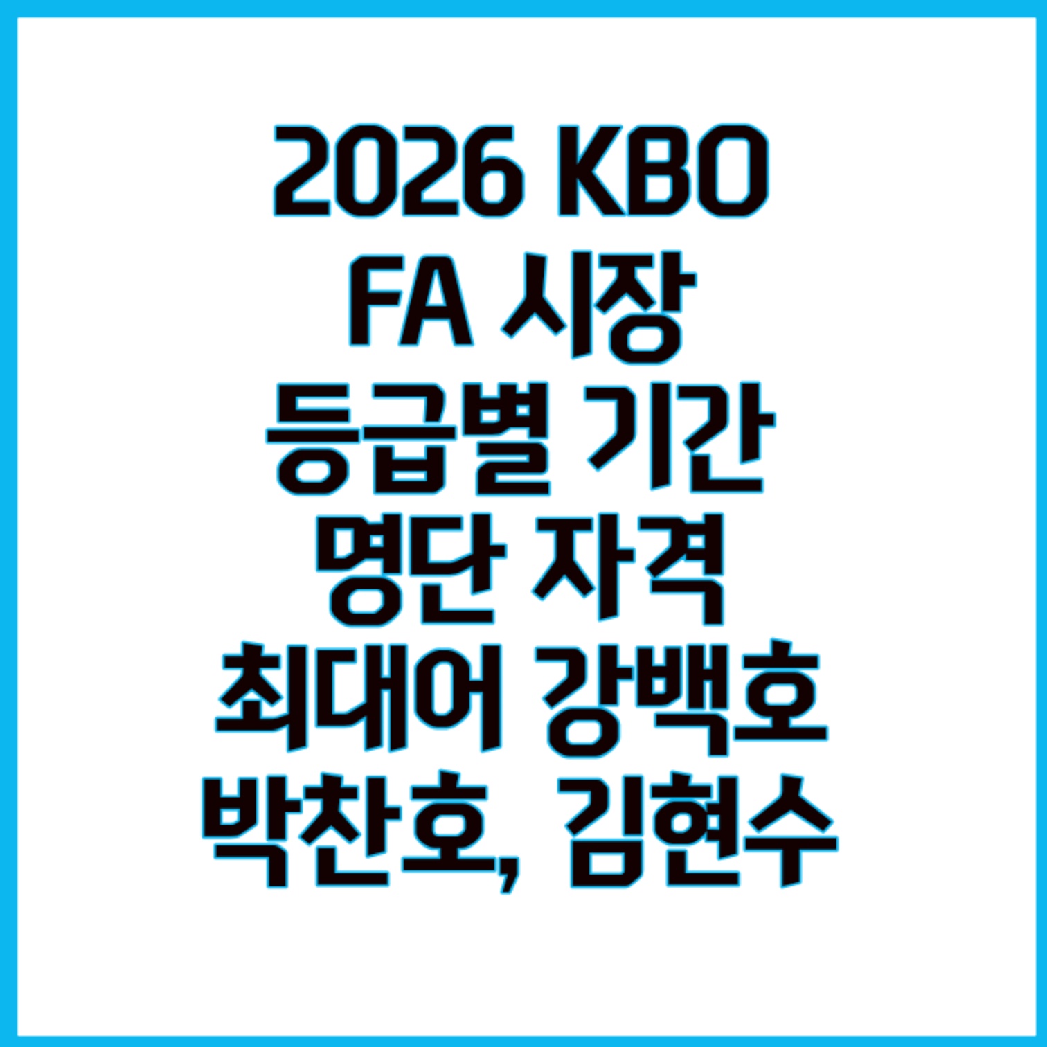 2026 KBO 스토브리그 FA 시장 등급별 기간, 명단, 자격 완벽 분석 최대어 강백호, 박찬호, 김현수 총정리