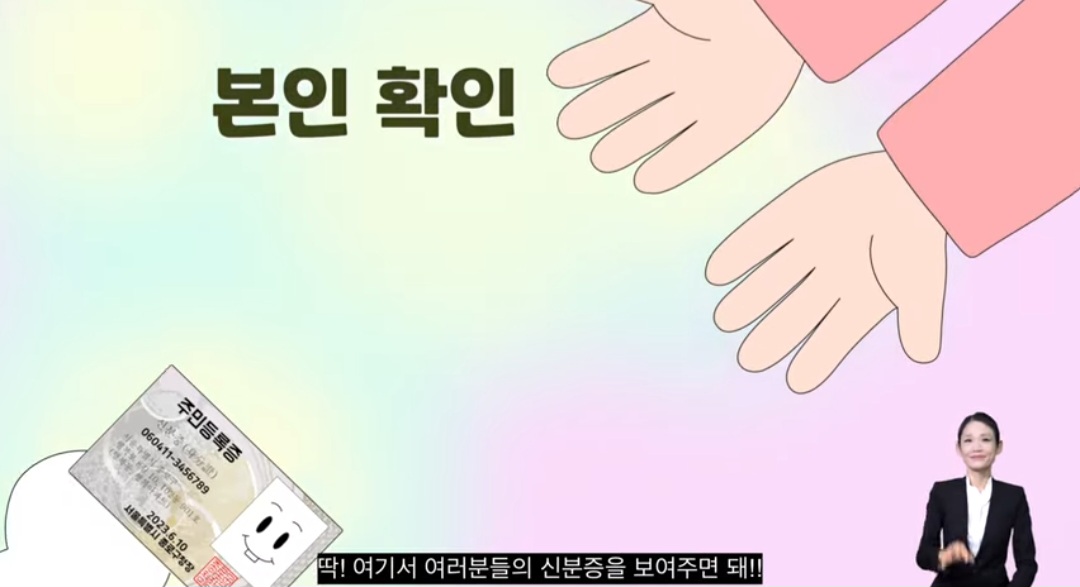 1)투표사무원에게 신분증 제시하여 본인임을 확인합니다