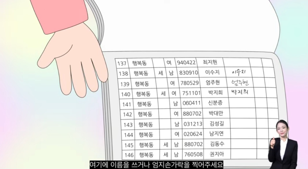 2)선거인명부에 서명 또는 (손)도장 날인