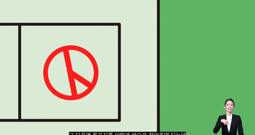 4)기표소에 비치된 용구(투표도장)로 기표합니다, 기표할 때는 빈칸에 하셔야 됩니다 (다른 곳에 하시면 무효됩니다)