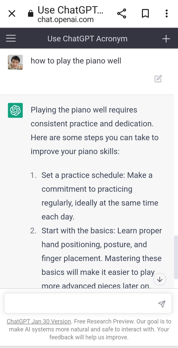 ※참고: 언어 모델로서 ChatGPT는 학습 중에 본 패턴에 따라 응답만 생성할 수 있습니다