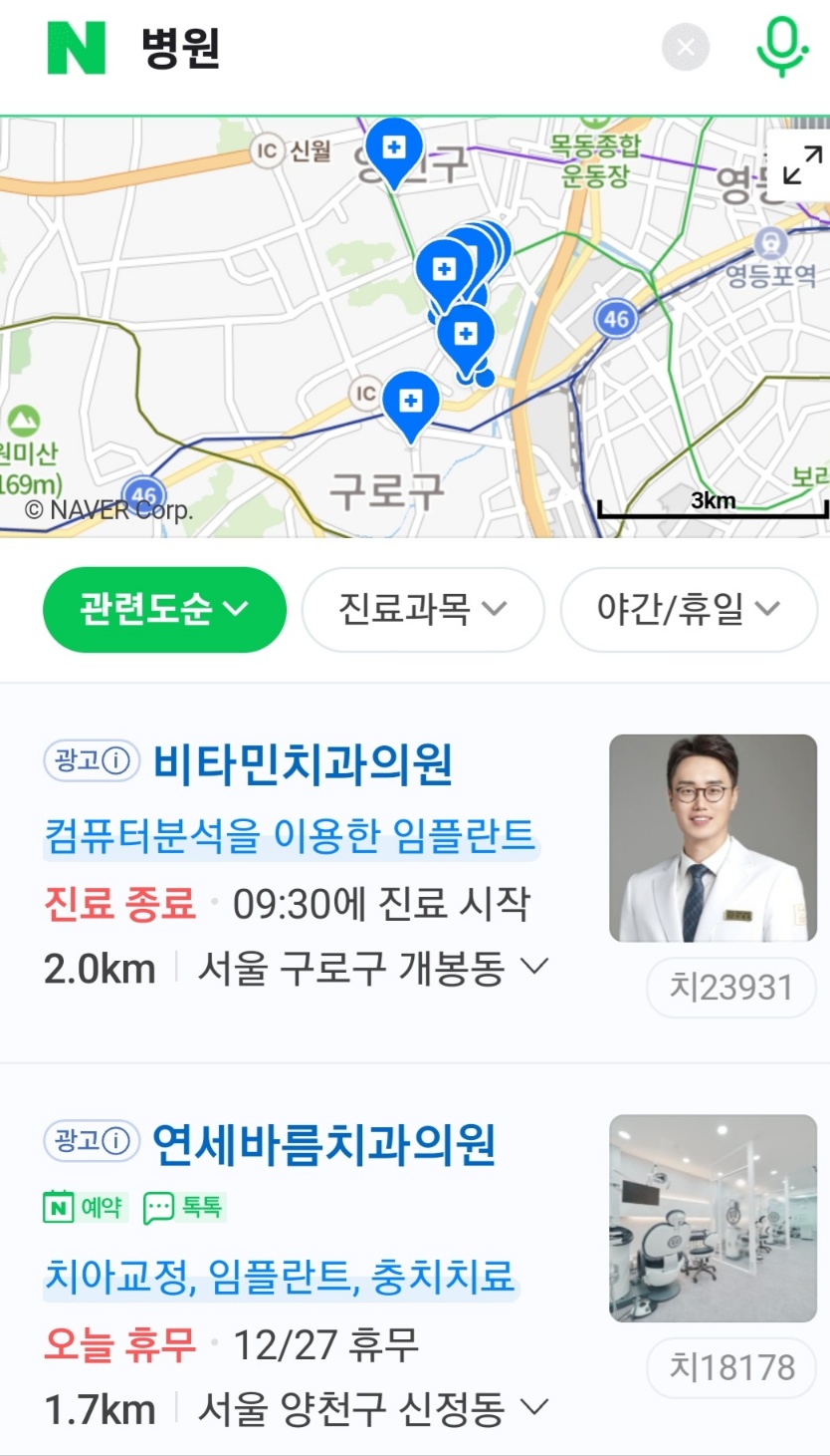 1.포털 사이트 네이버를 실행하고 '병원'을 검색합니다