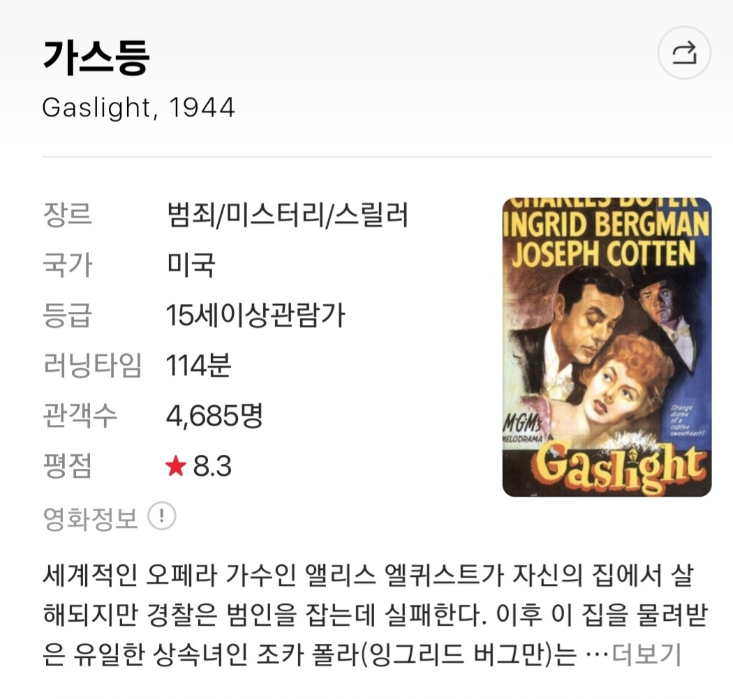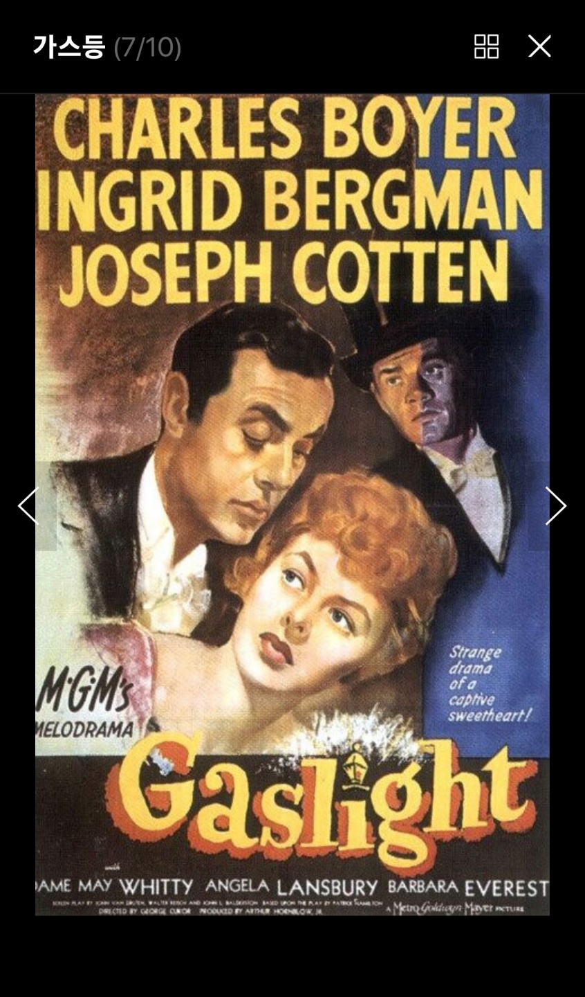여기서 잭이 벨라의 판단력이 비정상이라고 몰아가고, 이에 벨라가 수긍하는 행동을 본따 가스라이팅이라는 용어가 만들어지게 됩니다